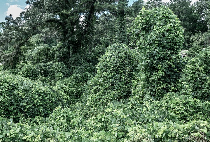 A sense of reclaiming acres of my internal landscape that had been overtaken by the kudzu of grievance: scripts in which I reproach the offenders, soliloquies to no one about my indignation. Bitter vines.